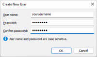 Typing your User name and then the Password and repeat in the Confirm password input field.