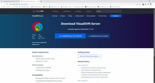 Go to https://www.visualsvn.com/server/download/ and click on "VisualSVN Server 5.0.2 (64-bit)".